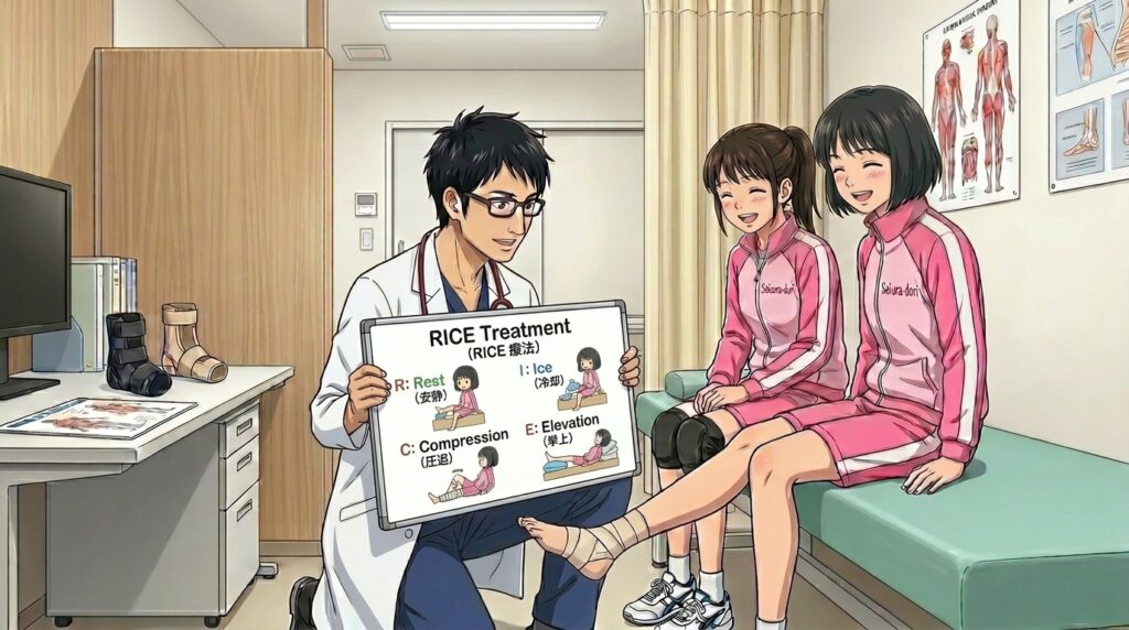 もしもの時は、慌てずRICE処置。そして必要なら早めの受診を。